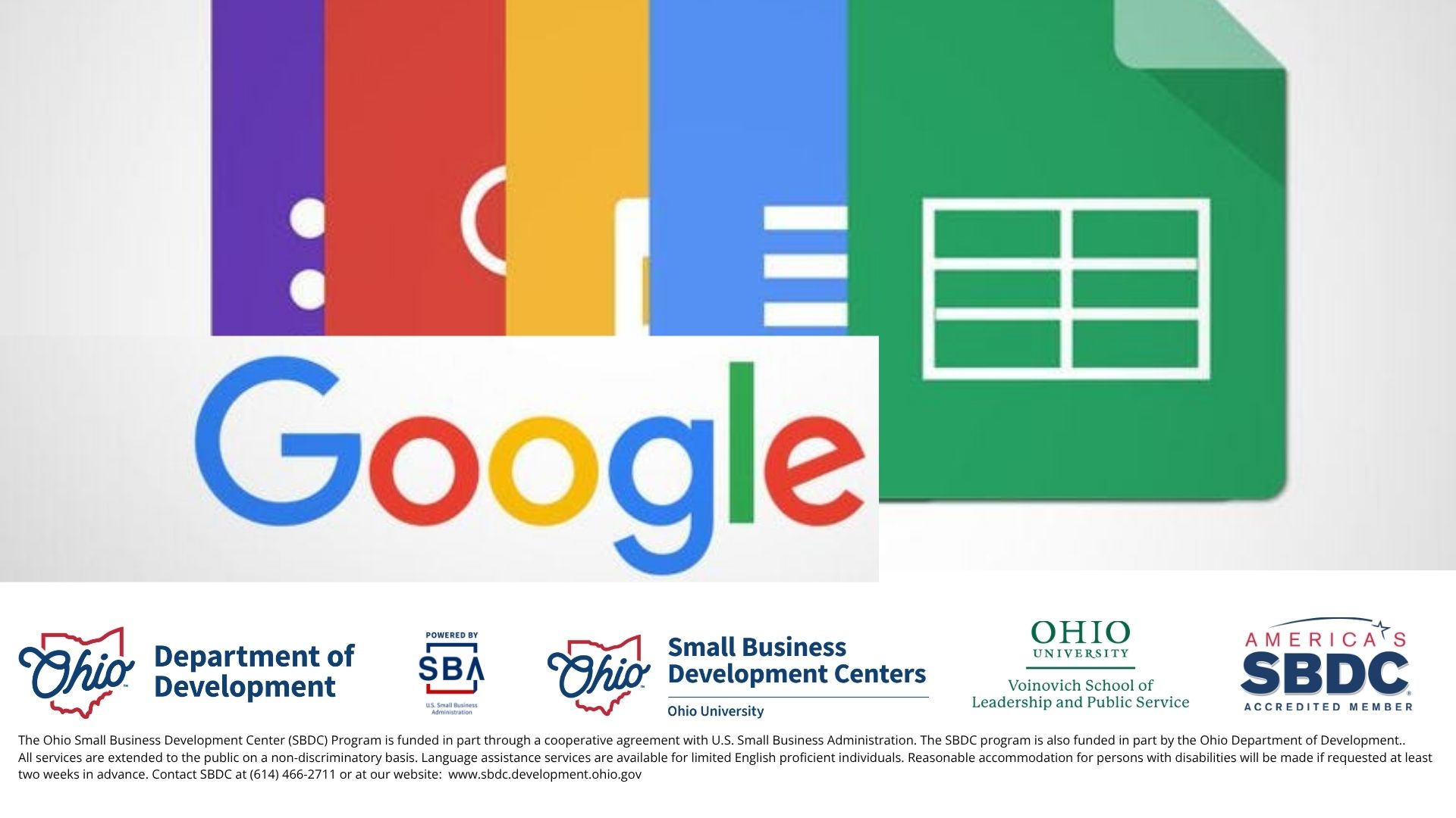 • Sheets – Formatting, basic formulas, and sharing